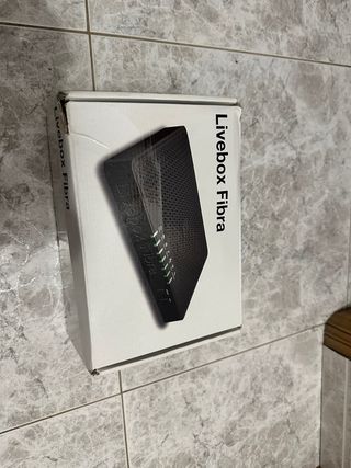 Router Livebox Fibra en color negro. - Diseño moderno y compacto. - Indicadores LED frontales.