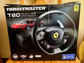 Volante Thrustmaster T80 Ferrari 488 GTB Edition Réplica a escala 8:10 del volante del Ferrari 488 GTB, con licencia oficial de Ferrari. Volante con diseño ergonómico, optimizado para todos los tipos de juegos de carreras en el sistema PlayStation 4, revestimiento con textura de goma en las superficies de agarre del volante. 11 botones de acción + D-pad multidireccional para desplazarte por los menús. Levas secuenciales de cambio de marchas montadas en el volante que permiten cambiar de marcha más rápidamente. Juego de 2 pedales grandes incluidos, con ángulo de inclinación ajustable y reposapiés ancho.
