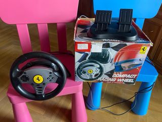 Volante y pedales para PlayStation 1 con diseño Ferrari. Lleva años sin usarse, asumo que está bien pero no tengo forma de probarlo