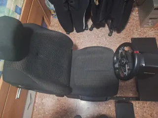 Playseat artesanal pintado en negro con asiento de MG ZR, muy deportivo y con buena sujeccion. Tiene un pale pequeño con ruedas para transportar, (que no aparece en la foto). Volante, pedales y cambio de marcha Logitec g29 incluido. Valido para Ps3 y Ps4
