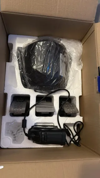 Volante force feedback Thrustmaster con juego de tres pedales magnéticos. Año y medio de uso moderado, en muy buenas condiciones. Únicos desperfectos: cable de alimentación pelado y cubierto con cinta aislante (ver foto), los botones frontales están algo desgastados. Se vende con juego de muelles de repuesto para pedales. Compatible con PS4, PS5 y PC. Se envía en la caja original.