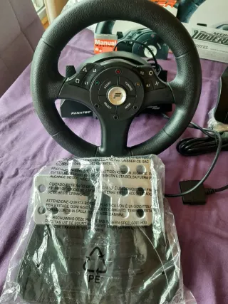 Volante de carreras Fanatec para PlayStation 2, con pedales incluidos. El artículo está sin estrenar. - Volante con agarre texturizado. - Pedales de acelerador y freno. - Compatible con PlayStation 2.