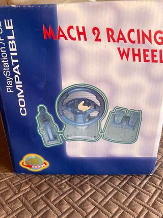 Vendo volante Mach 2 Racing de la marca Hador, compatible con PlayStation. Está en buen estado y se incluye en su caja original. - Volante y pedales incluidos. - Compatible con PlayStation 1. - Caja algo deteriorada por el paso del tiempo.