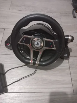 Volante de videojuegos para consolas PlayStation. Precio algo negociable no ago envíos solo lo doy en mano en Málaga capital - Diseño ergonómico con agarres texturizados. - Botones y D-pad integrados para control total. - Pedales incluidos para una experiencia de conducción inmersiva.