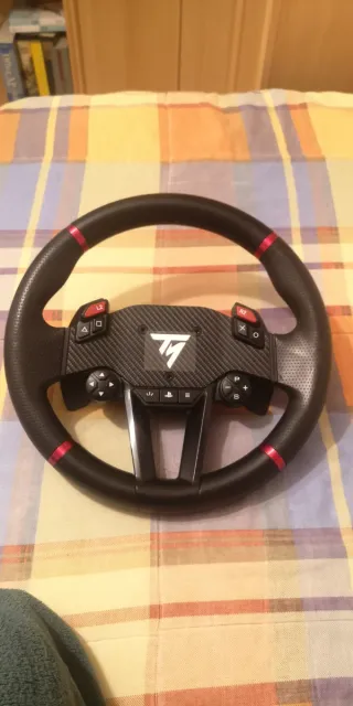 Volante de carreras compatible con PlayStation 4 y PlayStation 5. - Diseño deportivo con banda roja en la parte superior. - Botones de control integrados en el volante. - Logo de la marca en el centro. Muy poco uso, solo 3 meses