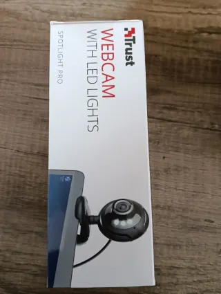 Webcam Trust con resolución HD 720p. La caja está algo dañada, pero la webcam funciona perfectamente. Apenas utilizada.