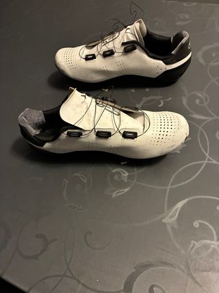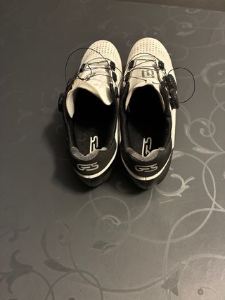 Zapatos de ciclismo marca GES, modelo Pulse, en color blanco y negro. Ideales para la práctica deportiva. - Cierre con sistema de dial. - Suela con calas incluidas. - Diseño deportivo. - Talla 43