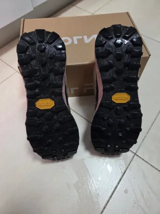 Zapatillas de trail running NNormal Tomir 2.0. - Suela Vibram. - Diseño con detalles en rosa.