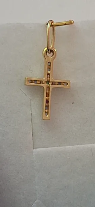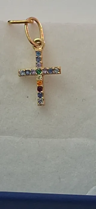 Precioso colgante de oro de 18 quilates en forma de cruz. No se vende por peso se venderia por objeto gracias. Es oro 18k autentificado por joyerias. Diseño adornado con circonitas de varios colores. - Acabado en oro brillante.