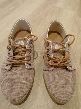 Zapatillas casuales en color rosa pastel de la marca Pompeii. - Diseño de lona. - Cordones marrones. - Suela de goma. - Estan nuevas. Se han usado 2 contadas veces.