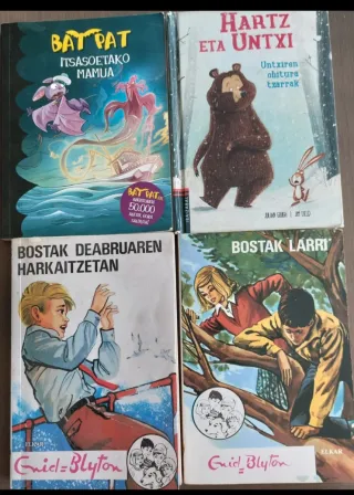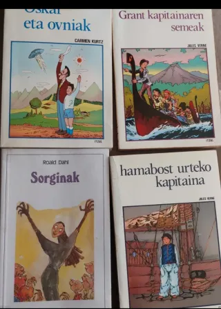 1- Bostak itsasertzean 2- Bostak larri 3- Grant kapitainaren semeak 4- Hamabost urteko kapitaina 5- Till Eulenspiegel 6- Xarpa 7- Azkonarren laguna 8- Miguel Strogoff 9- Txirbel 10- Nikolas Txikiren errekreoak 11- Eskubeltz taldearen abenturak 12- Pernando Amezketarra 13- Oskar eta Yetia