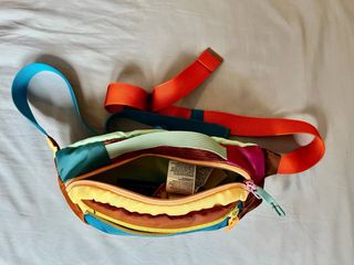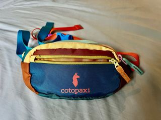 Riñonera de la marca Cotopaxi con un diseño vibrante y colorido. - Compartimento principal con cremallera. - Correa ajustable para llevar a la cintura o cruzada. - Logo de la marca en la parte frontal.