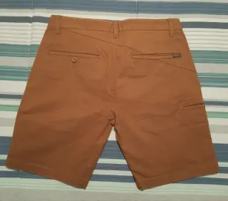 Pantalón corto de chico en color marrón. Cierre de botón y cremallera. - Bolsillos delanteros. - Bolsillos traseros. - Pequeño bolsillo lateral.