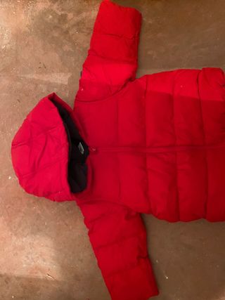 Abrigo rojo de la marca Petite Bateau con forro interior. - Capucha integrada. - Cierre de cremallera.