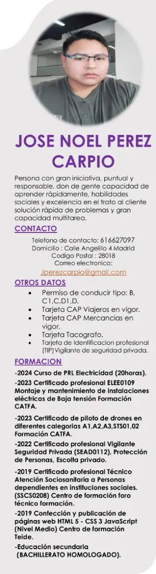 Soy un chico español de Madrid, muy interesado en aprender el oficio de carnicero/charcutero. Aunque no tengo experiencia previa, tengo muchas ganas de aprender, trabajar y formarme en el sector. Me considero una persona responsable, trabajadora y con buena actitud. Actualmente tengo disponibilidad completa de lunes a jueves, y estaría encantado de poder trabajar esos días, aunque fuese de forma temporal o como apoyo.