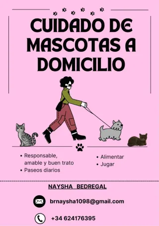 Hola soy un chico con amplia experiencia en cuidados de animales sacarlos a pasear es una de mis pasiones estoy disponible solo los findes de semanas horario de disponible 24h cobro 8 euros la hora