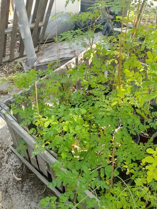 Es un árbol caducifolio. Presenta rápido crecimiento, unos 3 m en su primer año pudiendo llegar a 5 m en condiciones ideales; adulto llega a los 10 o 12 m de altura máxima. Tiene ramas colgantes quebradizas, con corteza suberosa, hojas color verde claro, compuestas, tripinnadas, de 30 a 60 cm de largo, con muchos folíolos pequeños de 1,3 a 2 cm de largo por 0,6 a 0,3 cm de ancho. Florece a los siete meses de su plantación. Las flores son fragantes, de color blanco o blanco crema, de 2,5 cm de diámetro. Produce vainas colgantes color marrón, triangulares, de 30 a 120 cm de largo por 1,8 cm de ancho, divididas longitudinalmente en 3 p