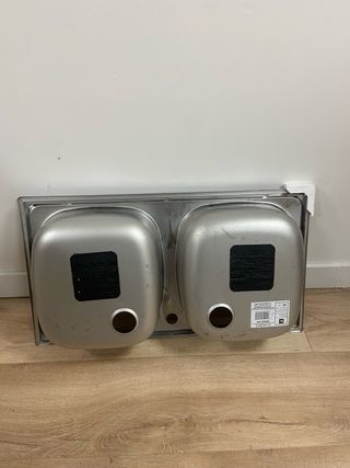 Fregadero de cocina Teka con dos cubetas, nuevo a estrenar se compro por error. - Fabricado en acero inoxidable. - Color plateado.