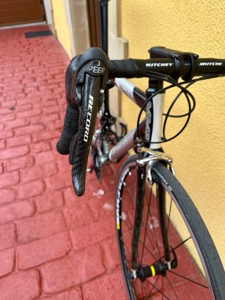 Cuadro de bicicleta de carretera MMR. - Cuadro de aluminio y horquilla de carbono - talla S le doy con caja pedalier, desviador delantero y trasero Csmpagnolo 2x10v y portabidones. -Con signos de uso pero en perfecto estado.