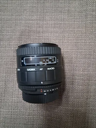 Objetivo Sigma AF 50mm f/2.8 Macro. - Montura: [Especificar montura si se conoce] - Apertura máxima: f/2.8 - Distancia mínima de enfoque: 0.22m (1:1) - Escala de magnificación: 1:1 Macro - Indicador de distancia y profundidad de campo.