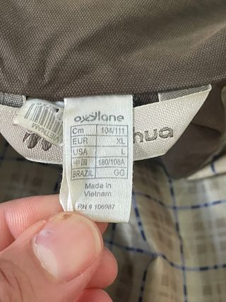 Chaqueta de la marca Quechua, talla XL, color marrón. - Fabricada en Vietnam. - Medidas: 104/111 cm (pecho), 180/108A (altura/pecho). - Tallas equivalentes: EUR XL, USA L, BRAZIL GG.