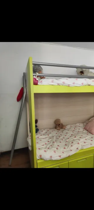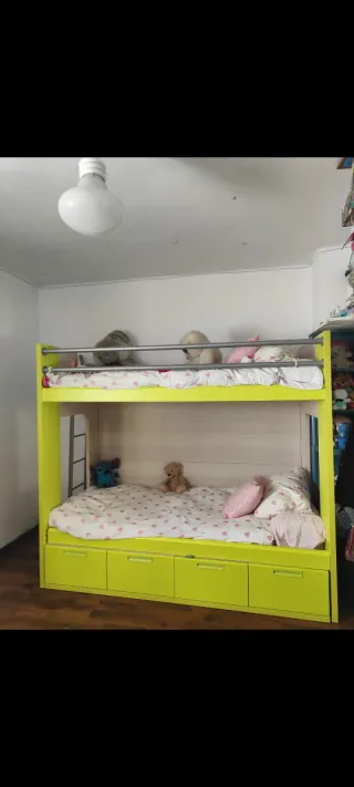 Litera juvenil con un diseño moderno y funcional, ideal para optimizar el espacio. - Estructura principal en color verde vibrante. - Incorpora cajones en la parte inferior para almacenamiento adicional. - Combinación de materiales resistentes para mayor durabilidad.