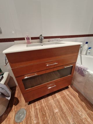 Mueble de baño con lavabo de cristal