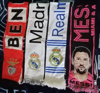 Bufandas deportivas originales del Real Madrid, Benfica y Messi