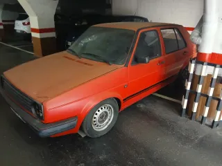Vendo Volkswagen Golf MK2 1.6 cl 75cv mod EZ carburación sin catalizar.Tiene 170.000km. Lo tengo desde hace mas de 10 años, lo restaure por completo frenos mecánica interiores paneles ,etc. Después ha pasado sin moverse 5 años pero se ha ido arrancando cada poco y dándole una vuelta por el garage. Cuando se pinto se eliminaron en chapa molduras,insignia y cierre maletero que ahora es eléctrico.lleva elevalunas eléctrico y cierre centralizado. Se vende por no tener tiempo para usarlo ni volverlo a ponerlo al dia. Lleva tambien roscada y tramo escape estilo golf gti. También se le toco un poco la carburación, subian las vueltas solas sonido precioso. Urge venta por falta de espacio. El coche valo lo que marca sino os gusta o queréis regatear mirar mejor otro. No cambios. Habría que llevárselo en grua. Ideal para proyecto, no óxidos.