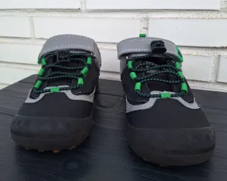 Zapatillas deportivas para niño en color negro y gris. Cuentan con cordones elásticos y cierre de velcro para un ajuste fácil. - Diseño moderno con detalles en verde. - Suela de goma. - Ideales para el día a día. - Talla 31 - Marca,Mishansha