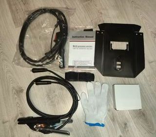 Equipo de soldadura inverter mig no necesita gas para hilo y electrodo con todos sus accesorios. - Soldadora inverter. - Máscara de soldar. - Pinza porta electrodo. - Pinza de masa. - Pistola hilo. - Cepillo. - Rollo de alambre.