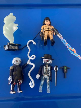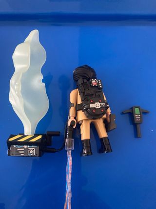 Set de figuras de Playmobil de Cazafantasmas. - Figura de Cazafantasmas con equipo. - Figura de fantasma. - Dos figuras adicionales con accesorios. - Incluye proton pack y otros accesorios.