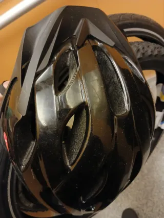 Casco de bicicleta en color negro, talla L. Cuenta con un diseño moderno y ventilado. - Talla L (59-61 cm). - Incluye etiqueta de talla.