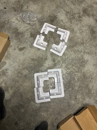 Conjunto de soportes de esquina para la instalación de paneles solares. Fabricados en plástico blanco resistente. - Set de 8 soportes. - Diseño en L para esquinas.
