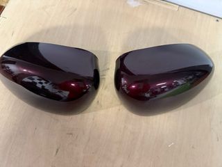 Juego de carcasas para los espejos retrovisores de un Fiat 500. Tienen un acabado brillante en color rojo oscuro / burdeos / granate. - Color: Rojo oscuro metalizado. - Material: Plástico. - Compatibilidad: Fiat 500 de 2019
