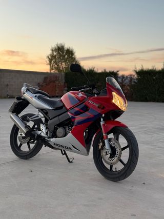 Honda CBR125R del año 2005. - 12.800km -Pegatina B - Motor 125 4 tiempos - Se puede probar - Color rojo y azul mitico - Mantenimiento al dia, aceite, filtros, cadena - Con todo original de honda - Neumáticos nuevos, frenos casi al 100% - Arranca al primer toque - Asientos en perfecto estado - Duerme siempre en garaje - Moto en perfecto estado PRECIO NO NEGOCIABLE