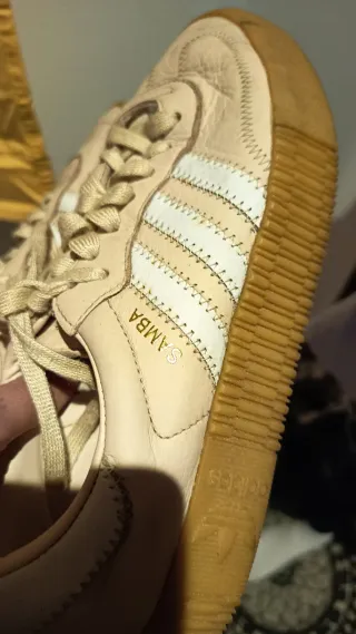 Zapatillas deportivas Adidas con un diseño clásico y moderno. - Combinación de colores verde y blanco. - Tres rayas laterales distintivas de la marca. - Muy cómodas. - Sirven para vestir sport o casual.