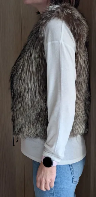 Chaleco de pelo con un diseño moderno y elegante. Perfecto para añadir un toque de estilo a cualquier atuendo. - Acabado suave y lujoso. - Cierre con cordones ajustables en los laterales. - Tacto suave