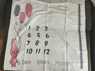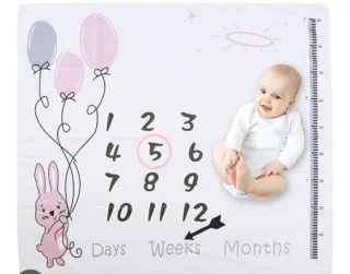 Manta cumple día, semanas y meses. Diseño de conejo, globos y medidor, ideal para hacer la foto cada mes , ver y guardar el crecimiento de tu bebé.