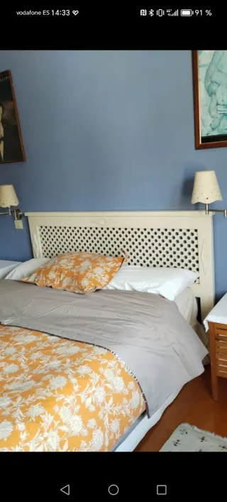 Cabecero de madera con acabado lacado, ideal para camas de tamaño 150 o 160. Hay que recogerlo en Galdakao. - Diseño con detalles calados. - Estructura de madera.