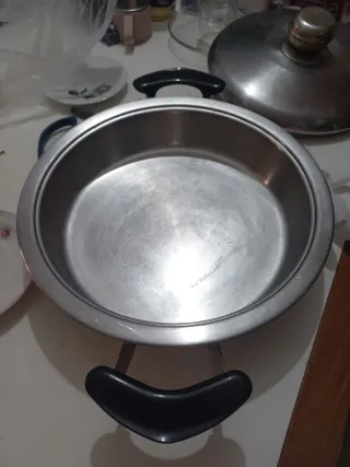 Paellera de la marca AMC. Ideal para preparar tus platos favoritos. - Fabricada en metal y plástico. - Color plateado y negro.