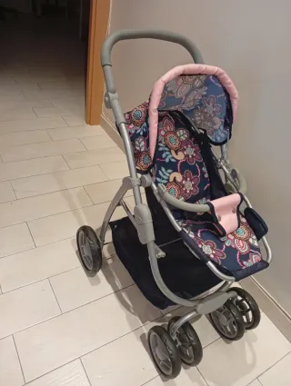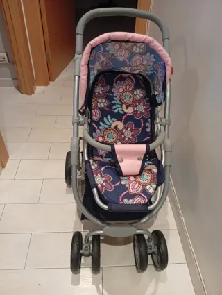 Conjunto de sillita para muñecas con capazo. - Estructura metálica. - Tejido estampado floral. - Capazo extraíble. - Tanto la sillita como el capazo se pueden poner mirando hacia los dos lados. - La altura del manillar se puede adaptar desde los 47 hasta los 82 cms. - El cochecito se pliega por completo. - Está en perfectas condiciones salvo la red de abajo que está un poco descosida pero se puede coser y que el capazo tiene una manchita ( ambas cosas se ven en las fotos). - Preferiblemente entrega en persona por el tamaño.