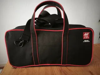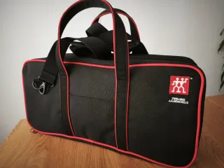 Maletín para cuchillos de la marca Zwilling. Ideal para transportar y proteger tu equipo. - 3 compartimentos. - Hasta 20uds. - Diseño en color negro con ribetes rojos. - Fabricado en nylon resistente. - Incluye correa ajustable para el hombro.