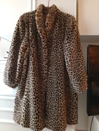 Elegante abrigo de piel Muton de la marca Michel Alexis. - Color beige y marrón. - Fabricado en Francia.