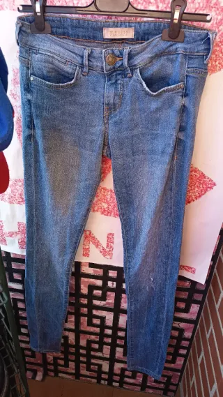 Vaqueros Guess con un diseño moderno y favorecedor. - Corte ajustado. - Lavado desgastado. - Cierre de botón y cremallera.