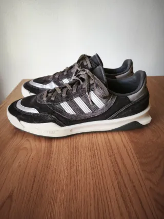 Zapatillas deportivas Adidas en tonos grises y plateados. Un diseño moderno y versátil. - Detalles plateados en los laterales. - Cordones grises a juego. - Suela blanca con detalles negros. - Muy cómodas.