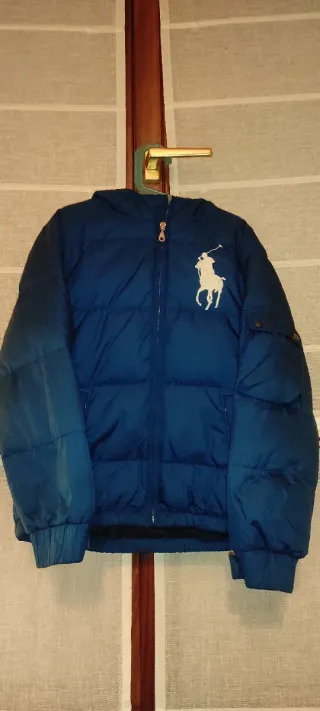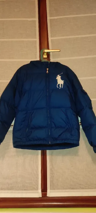 Chaqueta plumífero de la marca Polo para niño. - Color azul. - Logo blanco de Polo Ralph Lauren en el pecho. - Talla M (equivalente a 10-12 años).