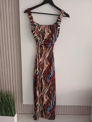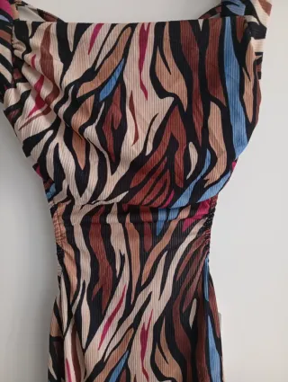 Vestido midi de canalé con estampado animal print. - Diseño ajustado. - Espalda descubierta.