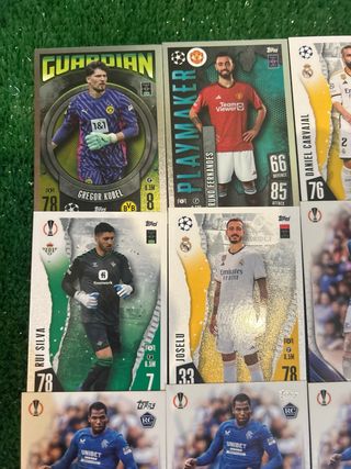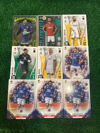 Lote de cromos de fútbol Topps. - Gregor Kobel (Guardian) - Bruno Fernandes (Playmaker) - Daniel Carvajal - Rui Silva - Joselu - Bailey Rice RC - Dujon Sterling RC x3