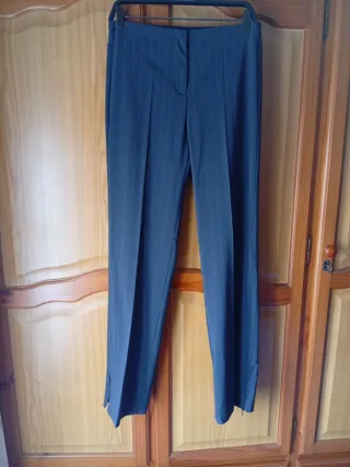 Pantalón de vestir con raya diplomática. - Diseño clásico y elegante. - Corte recto. - Detalle de raya diplomática. Diseño recto. Tiro alto. Cierre oculto de botón, gancho y cremallera. Dos bolsillos de ribete en la parte posterior. Abertura en el bajo con cierre de cremallera.